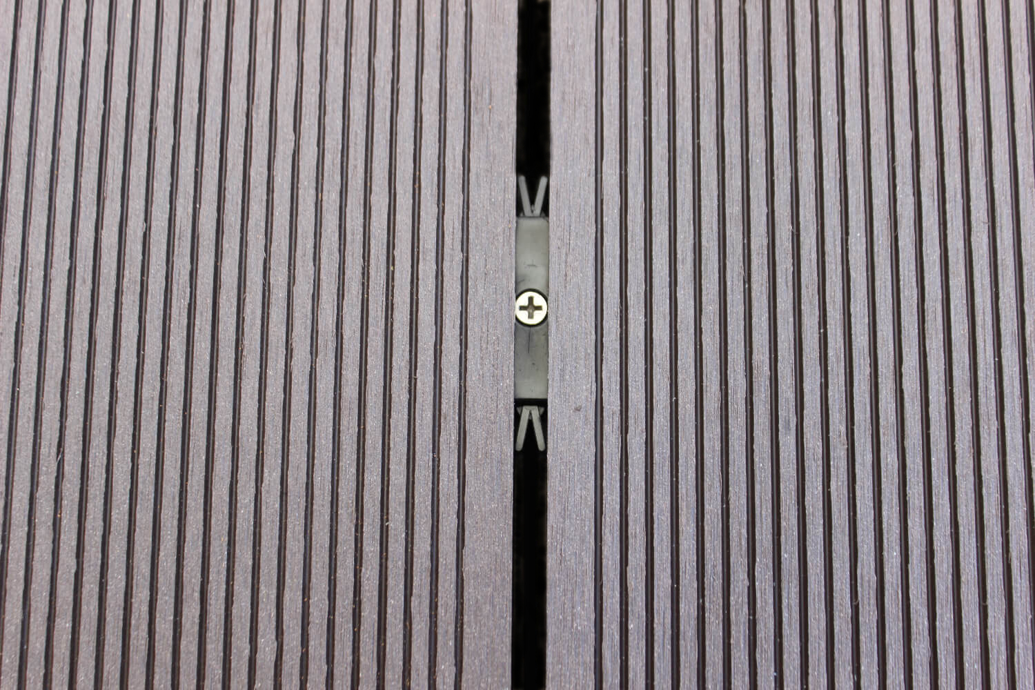 Komposiittilaudan muovinen T-kiinnike on peruskiinnike. Kiinnike ruuvataan yhdellä ruuvilla koolaukseen. Tämän jälkeen komposiittilauta työnnetään kiinnikettää vasten. Muovikiinnikkeellä lautojen väliin jää noin 6-7 mm rako. Lisätietoa kiinnikkeistä blogitekstissä. Suosittelemme lukemaan sen. –->Tietoa komposiittilaudan kiinnikkeistä.